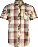Ambiguous Adair woven shirt. Lightweight. Allover plaid. Button front. Single chest pocket. Ambiguous label at left waist hem. Short sleeve. 60% cotton/40% polyester. Machine wash. Imported.