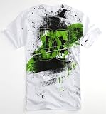 Attention to the details. DC logo at center chest. Paint spray and drip details cover the front.