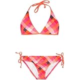 Hurley Kings Road bikini set. Allover plaid pattern dotted with Hurley logos. Halter bikini top with strings that tie at back of neck and at back. Bikini bottoms with decorative ties at waist sides. 80% nylon/20% lycra. Hand wash. Imported.